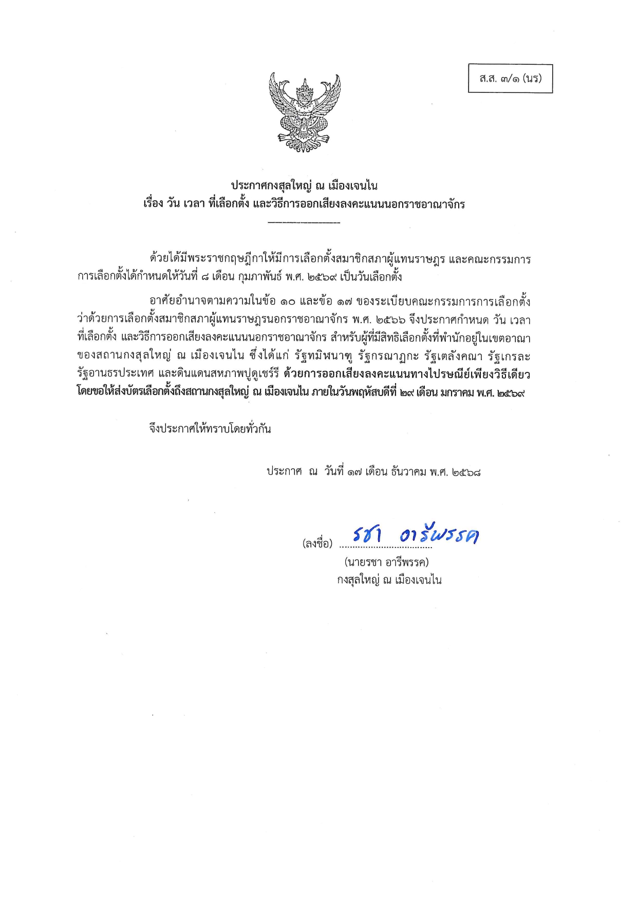 ผู้มีสิทธิเลือกตั้งที่พำนักในพื้นที่ดังกล่าวและมีความประสงค์จะใช้สิทธิเลือกตั้ง สามารถลงทะเบียนผ่านระบบอินเทอร์เน็ต ได้ตั้งแต่วันที่ 20 ธันวาคม 2568 เวลา 00.01 น. (ตามเวลาในประเทศไทย) ถึง วันที่ 5 มกราคม 2569 เวลา 23.59 น. (ตามเวลาในประเทศไทย) ตลอด 24 ชั่วโมง โดยใช้บัตรประชาชนและ passport ที่ยังไม่หมดอายุ ที่ link ต่อไปนี้